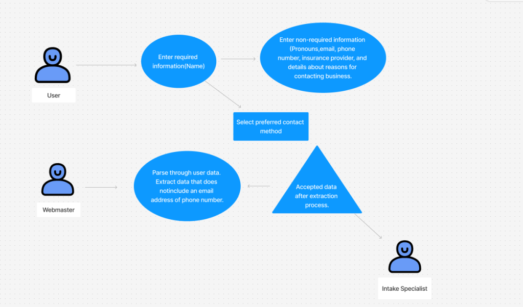 I am familiar with HIPAA laws along with the ethical standards that therapists have to adhere to. That knowledge helped me design a product. It will allow potential clients to express how they are feeling. They can do this without sacrificing their confidentiality. Another contribution was my strong technical acumen, which allowed to construct the typography, along with building the product. I also conducted user surveys using survey monkey.