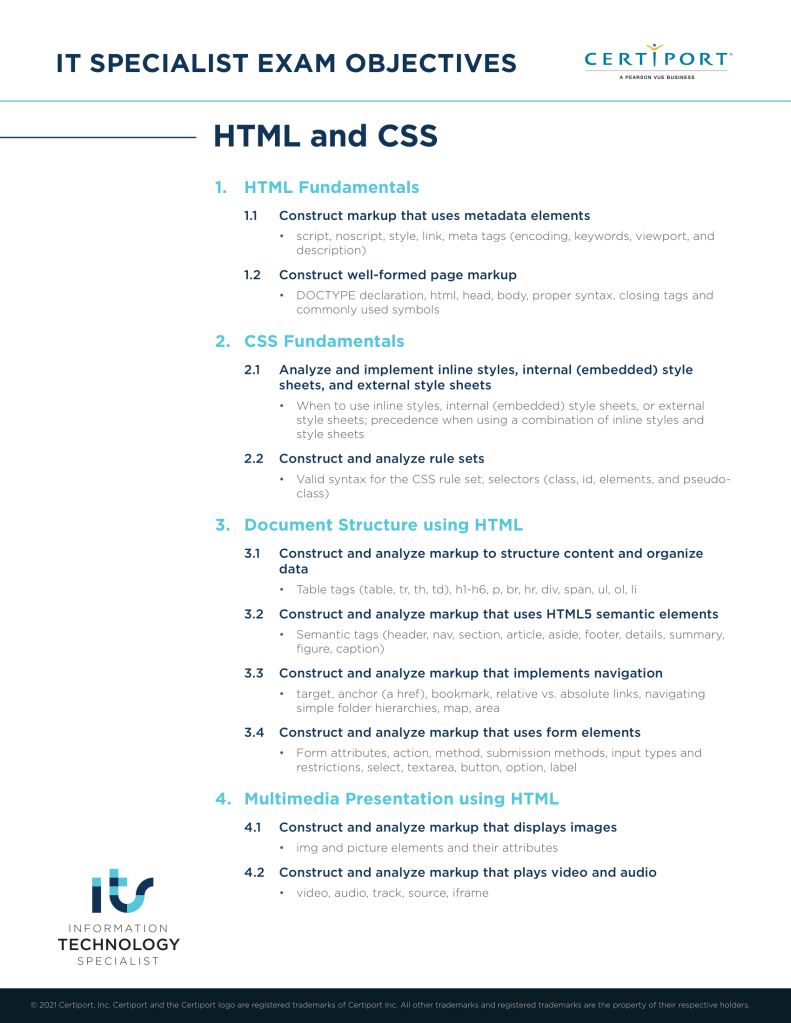 Curriculum for Adult Learners looking to obtain an IT Specialist certification