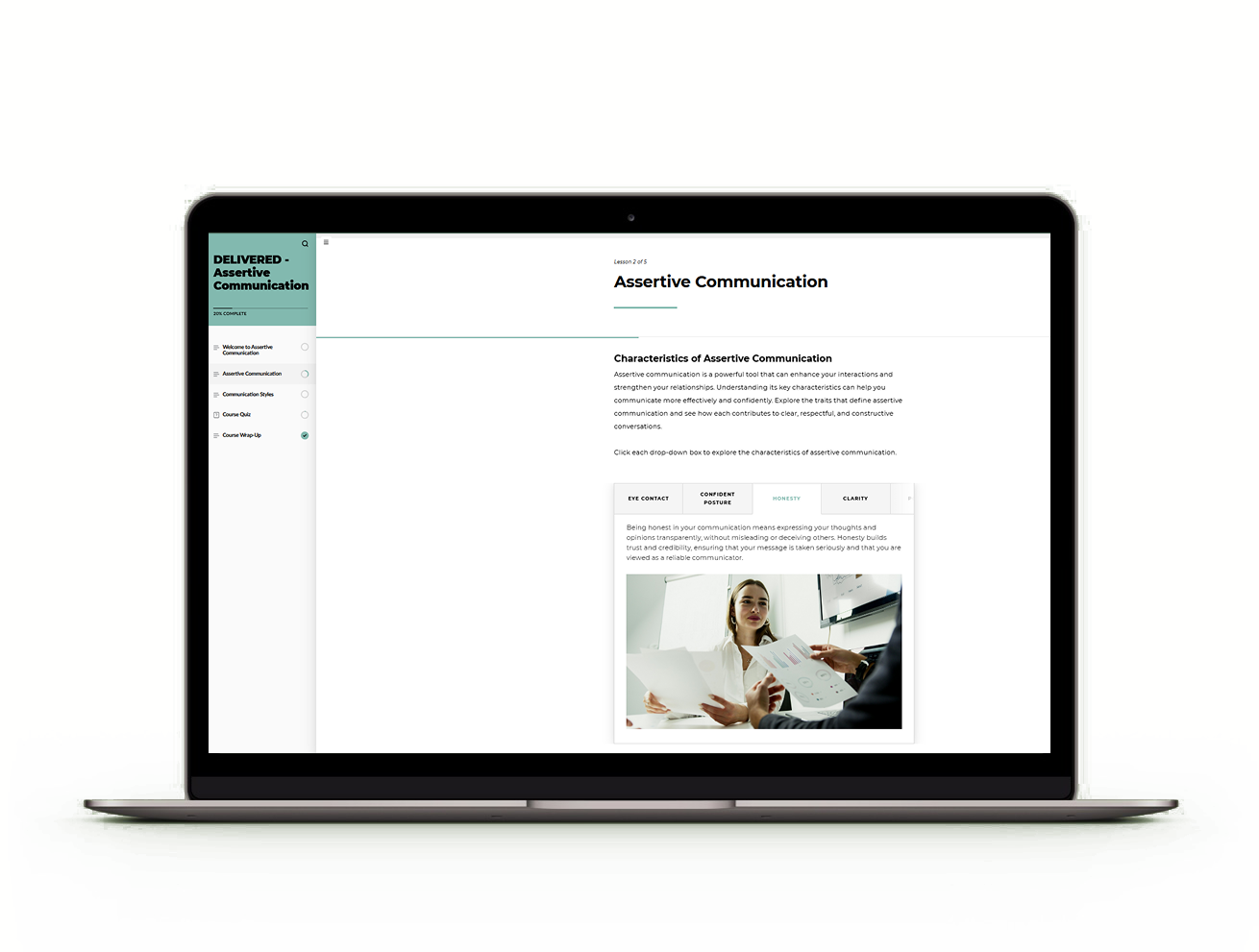 Designed an assertive communication lesson for the American Academy of Professional Coders (AAPC) to help members navigate workplace challenges. As Product Manager and Curriculum Designer, I created interactive, research-backed content that drove a 70% increase in learner engagement and achieved 100% WCAG 2.2 accessibility compliance.